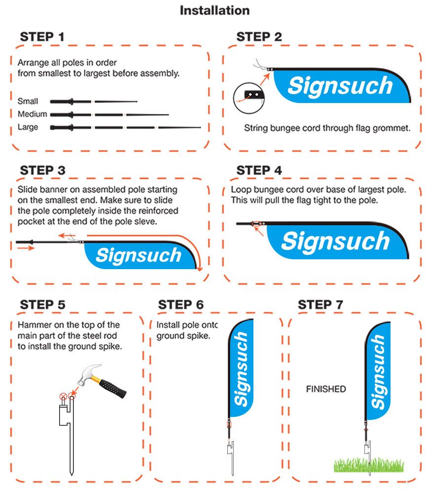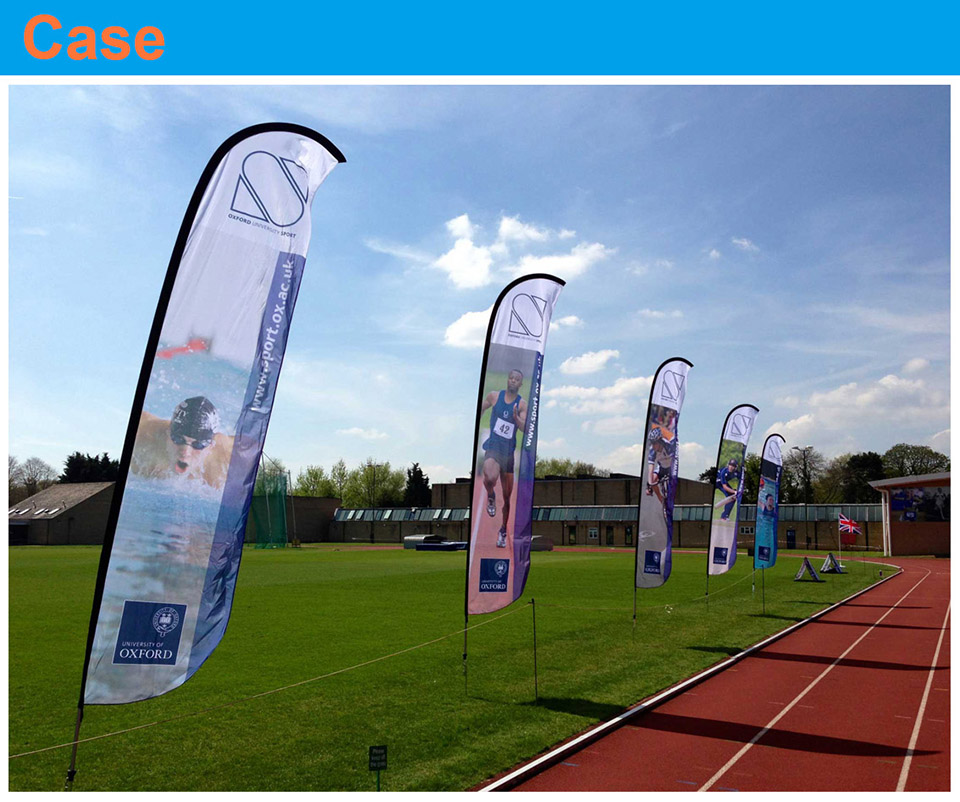 Standard price include 4Kits fiberglass poles; 4Kits flags with single side printing (different design for each flags or the same); 4Kits spike bases ; 4Kits Simple Carry Bag Free Shipping : 3-7 Working days;Single and double sided graphics available ;Indoor and outdoor baes available;The flags can rotate in the wind ;